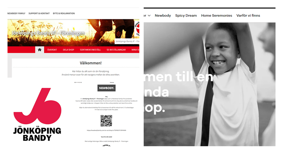 Nu drar JB igång försäljning av NEWBODY produkter. Lagom till jul går det att införskaffa sina julklappar! Samtidigt stöder DU oxå JB i att bedriva bandyverksamhet i bygden! Av färsäljningen går ca 25% till föreningen! Nytt sedan föreningen senast sålde Newbody är att färsäljningen är digital, du sitter hemma och zappar in dina beställningar. Dessutom - utbudet innehåller tre grenar. 1. Omtyckta basplagg, och smarta funktionsplagg – produkterna i Newbodys sortiment är sådant som alla använder, behöver och vill ha. 2. Spicy Dream är varumärket som får råvaror och maträtter att bli ett par snäpp godare. Det är kryddor, oljor och honungssorter av toppkvalitet. 3. Home Seremonies: Ljus, tvål, doftljus och heminredning som ger lyxigare glans åt vardagen. Inspired by Scandinavian nature. Made in Sweden. Vilka tider gäller? Snabba puckar - beställ före den 6/12 så får du grejorna i mitten v50 d v s till tomten kommer! (om du inte direktbeställer - se nedan) Leverans? Väljer du alternativet direktköp får du leveransen till valfritt ombud inom 2-5 arbetsdagar. Fri frakt när du köper 6 eller fler paket. Så varför inte köpa lite kläder, lite kryddor osv... och få allt hem? Hur gör jag? Tre sätt: 1. Gå in på Newbody sida och registerar dig själv som "säljare" - beställ själv snabbt och enkelt med knapptyck. MEN - du kan nu dela med dig via QR-kod/facebook etc så kan andra beställa med dig som "leverantör". 2. Du får en "inbjudan" från någon som redan är registerad, beställer själv digitalt (genom din administratör). 3. Handla direkt på hemsidan och se till välja JB som den förening du vill stötta! (finns en knapp att välja förening) Enkelt? Javisst! Så får vi hoppas det funkar med! TACK FÖR NI VÄLJER STÖTTA JÖNKÖPING BANDY IF!
