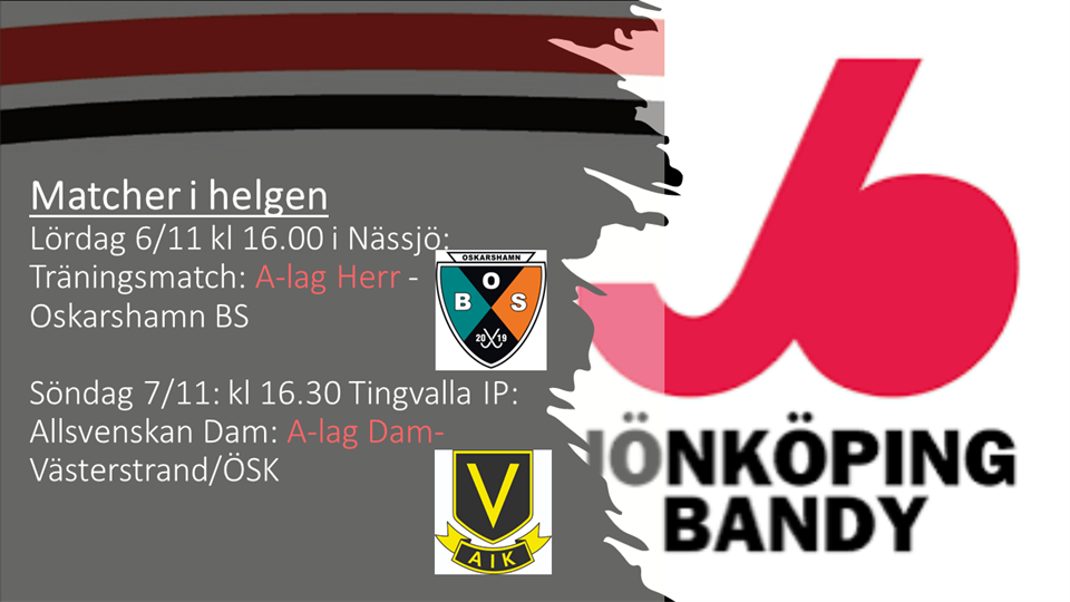 I helgen blir det så seriestart på söndag 7/11 kl 16,30 för JB-Dam då man på bortais ska få skrinna in i den alldeles nya bandyhallen på Tingvalla IP i Karstad. Västerstrand/ÖSK heter motståndaren. På lördagen 6/11 gör JB-Herr sitt sista genrep innan serien startar nästa heölg då man möter Div 1-laget Oskarshamn i en träningsmatch kl 16.00 i Stinsen Arena, Nässjö. JB-Dam matchen kan du följa på t ex Elitrapport eller Bandygrytan På söndag kväll vet vi mer!